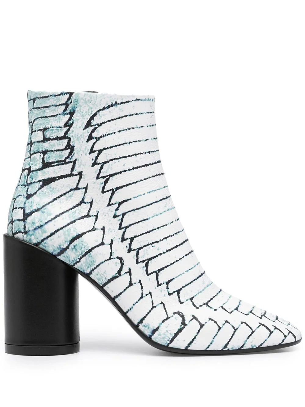 90mm ankle boots These boots are made for showing off. Step out in these printed ankle boots from MM6 Maison Margiela to elevate your look. Tower above the crowd. Made in Italy Composition PBV 100% SIZE & FIT Measurement HEEL 3.54 in(9 cm) HEIGHT 3.93 in(10 cm) Sole height 0.98 in(2.5 cm)