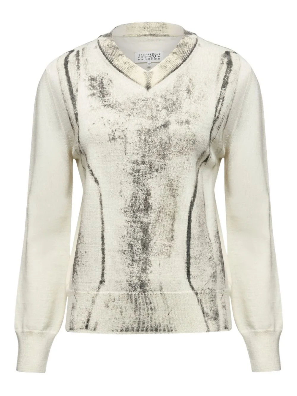 abstract-print sweater Highlights - Ivory - Abstract print design - V-neck - Long sleeves - Ribbed cuffs - Ribbed hem Imported Composition Virgin Wool 50%, Acrylic 50% Washing instructions Read Manufacturer Guidelines