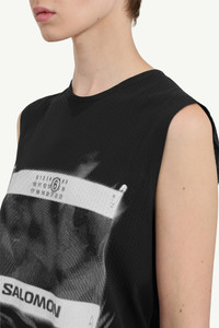 This seamless nylon top merges MM6’s daring design with Salomon’s technical expertise. An abstract print showcases the Maison's numeric artwork and Salomon signature, while the crewneck and regular fit make it effortlessly wearable for athleisure. The MM6 white stitch line and collaborative label at the back capture the essence of this bold partnership. Product Details Item ID S52NL0071M20101900 Composition: 100% nylon Nylon top Seamless Crewneck MM6 x Salomon label at the front Front print MM6 x Salomon label at the back Regular fit