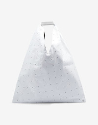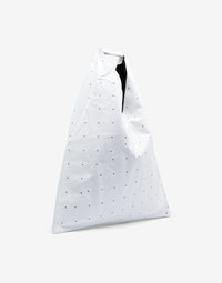 Classic Japanese bag in “all over 6” artwork print. Inspired by the traditional Japanese technique of origami, the iconic bag collection portrays a triangular shape with a top handle and the Maison’s signature stitch on the back. The snap button on the edges allows for a change in shape, further revealing another trait of the origami inspiration. A nod to the Maison’s deconstructionist code. Item details 100% Cotton, Bovine leather Width: 19.5 inches Height: 20.7 inches Gabardine Brand logo Bag handle Snap buttons fastening Contains non-textile parts of animal origin Internal pocket