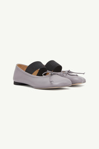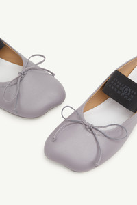A perennial classic, MM6’s Anatomic line adds the ballet flat to its offer. Featuring a cylindrical tonal heel and numeric signature elastic on the ankle, the ballet flat is handcrafted in nappa leather detailed by a front bow and the ever present signature horizontal white stitch line embroidered on the back of the shoes. Product Details Item ID S59WZ0099P3628T8150 Upper: 100% ovine leather Contrast: 74% polyester 26% rubber Lining: 100% calf leather Inside: 100% goat leather Sole: 100% calf leather Contrast: 100% rubber Heel height: 1 cm Ballet shoe with rounded toe Bow detail on the front Made in Italy
