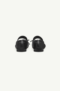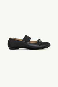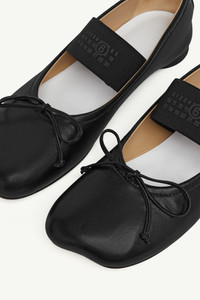 A perennial classic, MM6’s Anatomic line adds the ballet flat to its offer. Featuring a cylindrical tonal heel and numeric signature elastic on the ankle, the ballet flat is handcrafted in nappa leather detailed by a front bow and the ever present signature horizontal white stitch line embroidered on the back of the shoes. Product Details Item ID S59WZ0099P3628T8013 Upper: 100% ovine leather Contrast: 74% polyester 26% rubber Lining: 100% calf leather Inside: 100% goat leather Sole: 100% calf leather Contrast: 100% rubber Heel height: 1 cm Ballet shoe with rounded toe Bow detail on the front Made in Italy