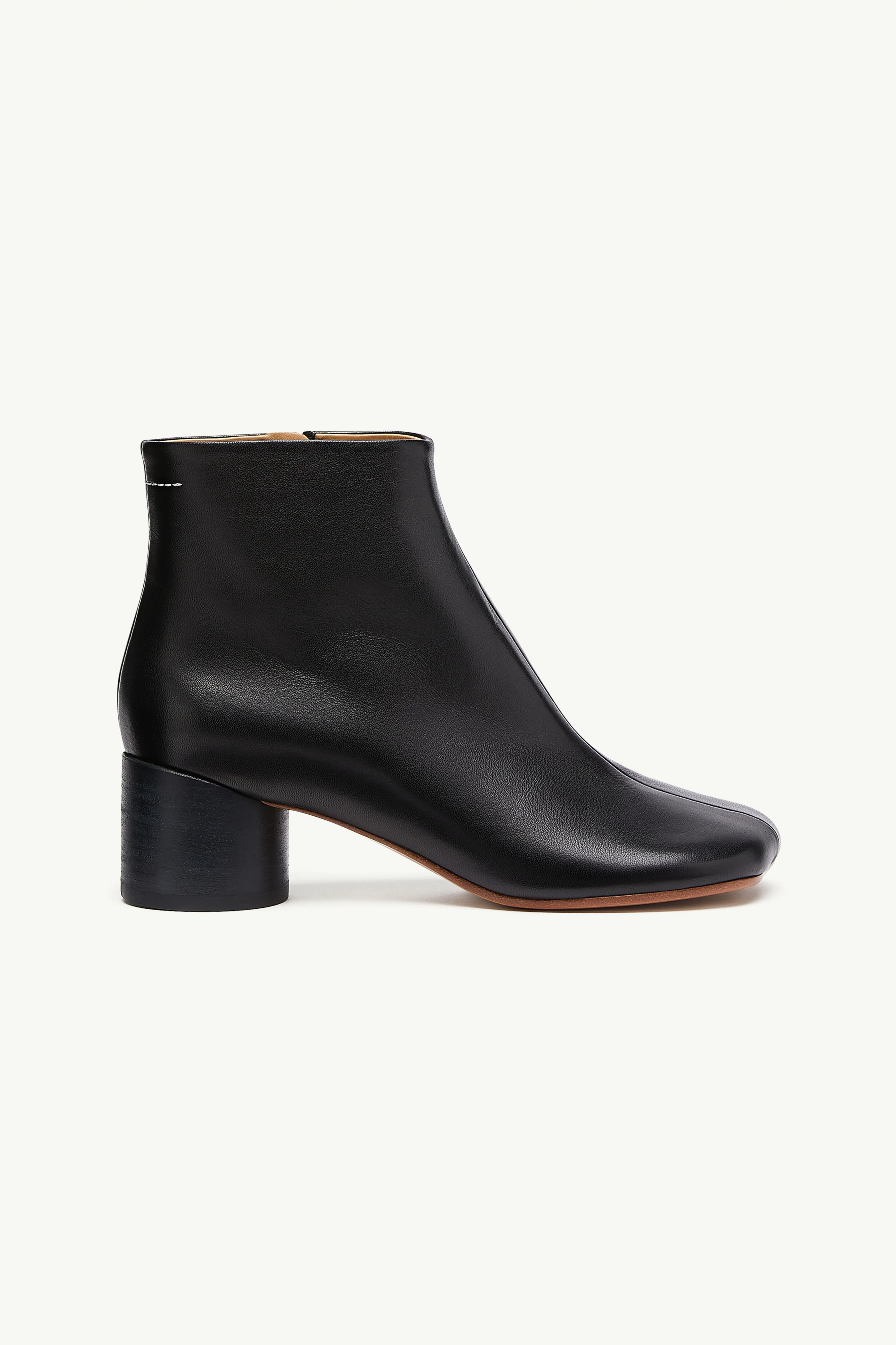 Anatomic classic ankle boots in nappa leather with a curved tonal heel and inner side zip. MM6’s discreet yet distinct signature, a horizontal white stitch line, is present on the back of the shoes. Product Details Item ID S59WU0173P3628T8013