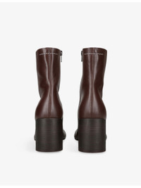 PRODUCT DETAILS - MM6 leather ankle boots - 100% leather - Zip fastening - Ankle rise, asymmetric closed toe, curved tonal heel, horizontal stitch at back - Heel height 70mm / 2.75in - Specialist leather clean - Made in Italy - Upper: 100% leather - Lining: 100% leather - Sole: 100% leather Ref: R04554223