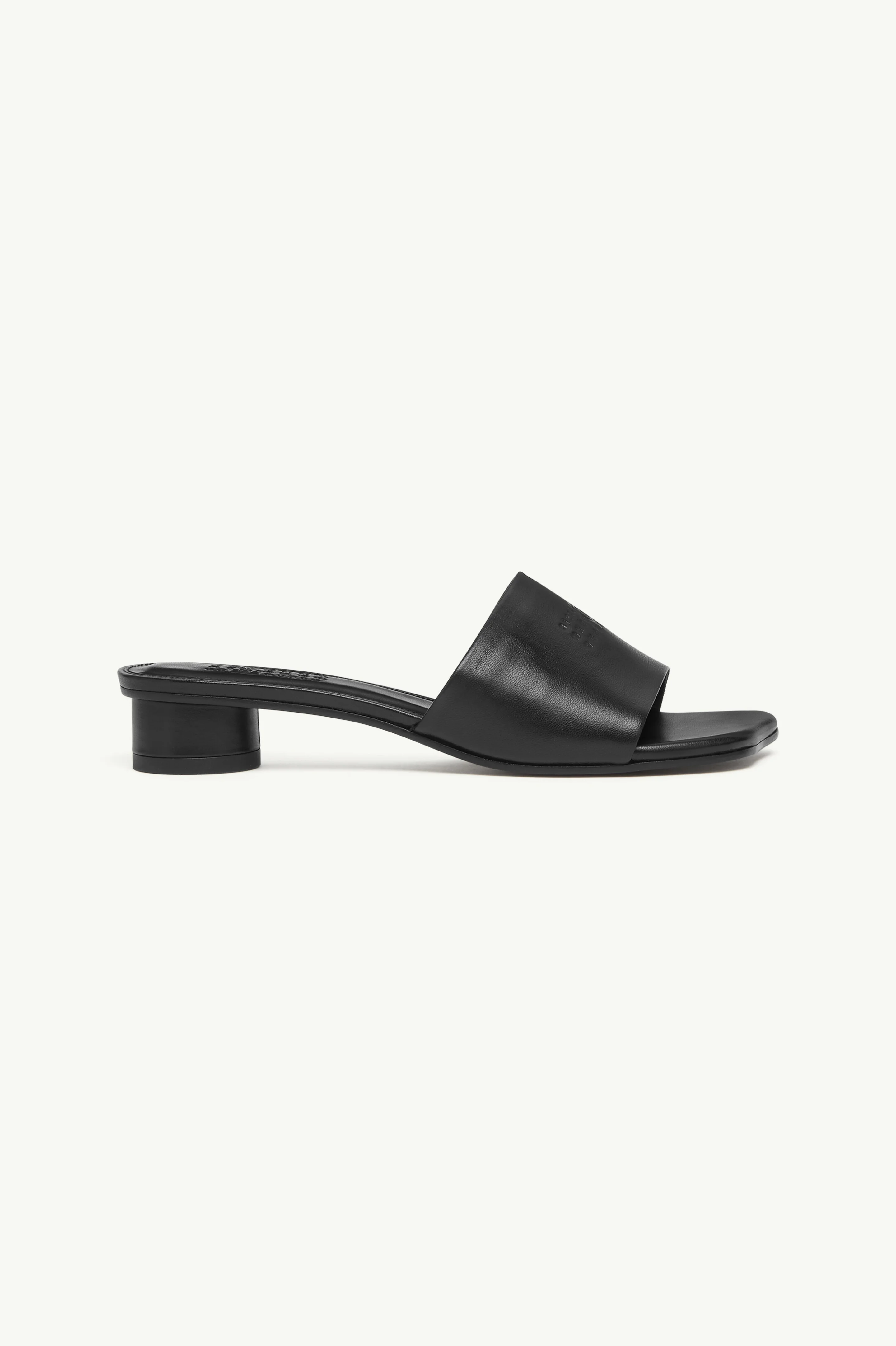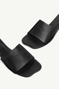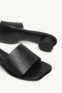 In smooth nappa leather, these sandals fuse a minimalist design with subtle MM6 signatures. The sculpted sole nods to the Maison’s iconic anatomic toe, while embossed numeric artwork offers a refined, tactile detail. A quiet statement of contemporary craftsmanship. Product Details Item ID S66WP0109P3628T8013 Upper: 100% ovine leather Lining: 100% calf leather Inside: 100% goat leather Sole: 100% calf leather Contrast: 100% rubber Heel height: 3 cm Cylindrical heel Slip-on sandal with open toe Engraved logo on upper Made in Portugal