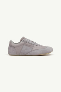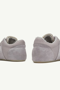 In a muted white palette, these sneakers refine everyday wear through a slim sole and an anatomic toe shape. The numeric signature at the side and signature white stitch line at the back encapsulate MM6’s subdued yet distinct language – an essential form distilled to its defining elements. Product Details Item ID S66WS0106P6435T8150 Upper: 100% calf leather Contrast: 100% calf leather Lining: 60% cotton, 40% polyester Inside: 100% calf leather Sole: 100% rubber Flat rubber sole Low-top sneaker silhouette Lace-up closure, seven eyelets per side Mix of smooth and suede panels on upper Perforation details on toe box Contrast panel on side Padded collar and tongue with shearling trim Small horizontal stitching on heel counter MM6 anatomic shape White stitch line at the back Made in Italy