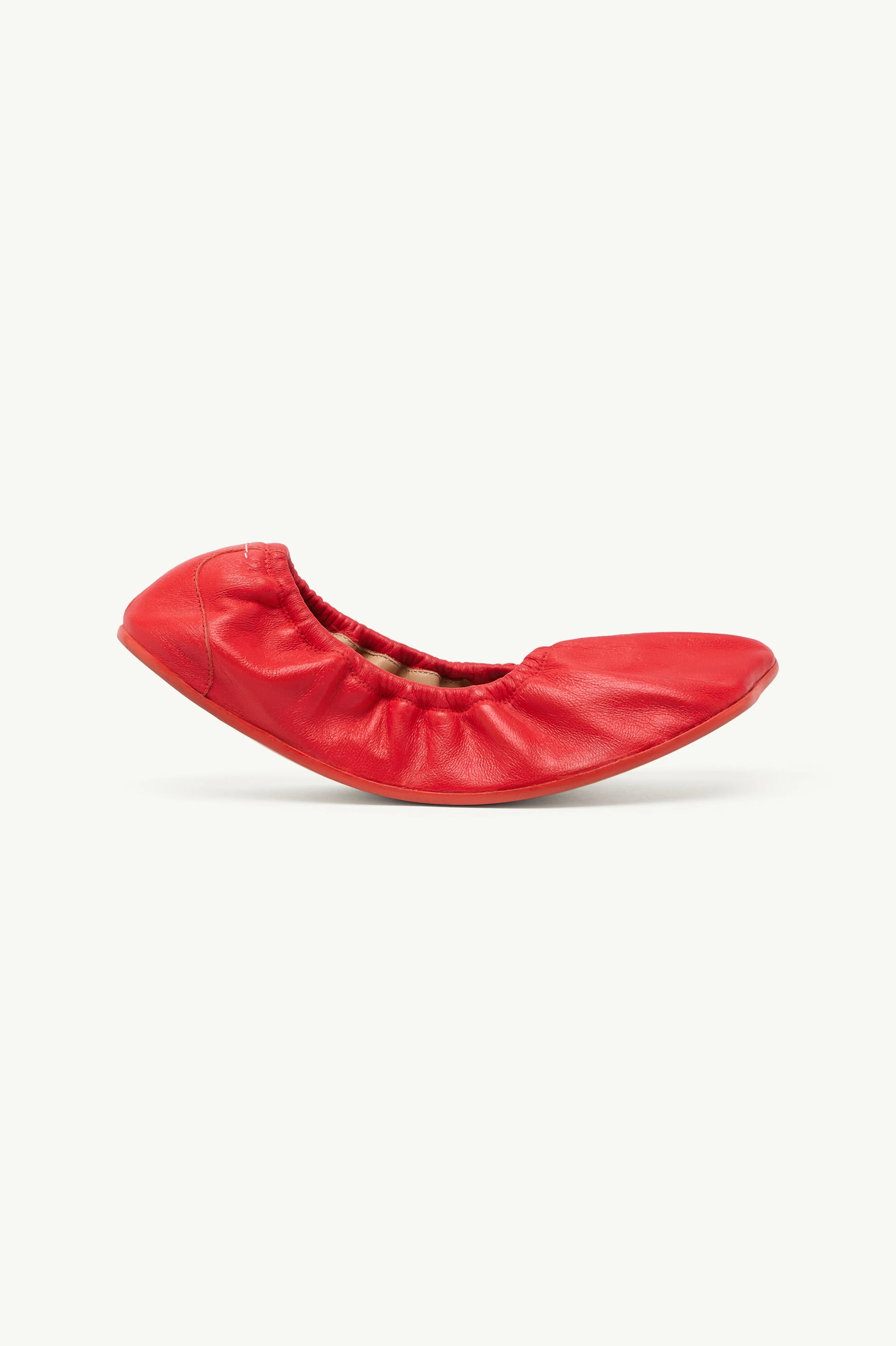 The Anatomic Travel Ballerina is rendered in supple nappa leather with a gathered topline that enhances comfort and flexibility. Lightweight and versatile, the style adapts effortlessly to movement while retaining the line’s signature anatomic toe. Finished with the MM6 white stitch line. Product Details Item ID S59WZ0105P7557T4017 Upper: 100% ovine leather Lining: 100% ovine leather Inside: 100% ovine leather Sole: 100% calf leather Contrast: 100% rubber Nappa guanto leather Ballet flat construction Rounded square toe Elasticated topline Made in Italy