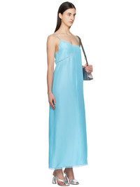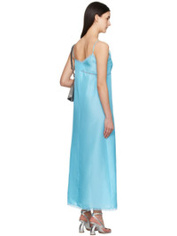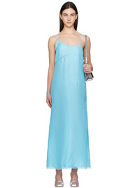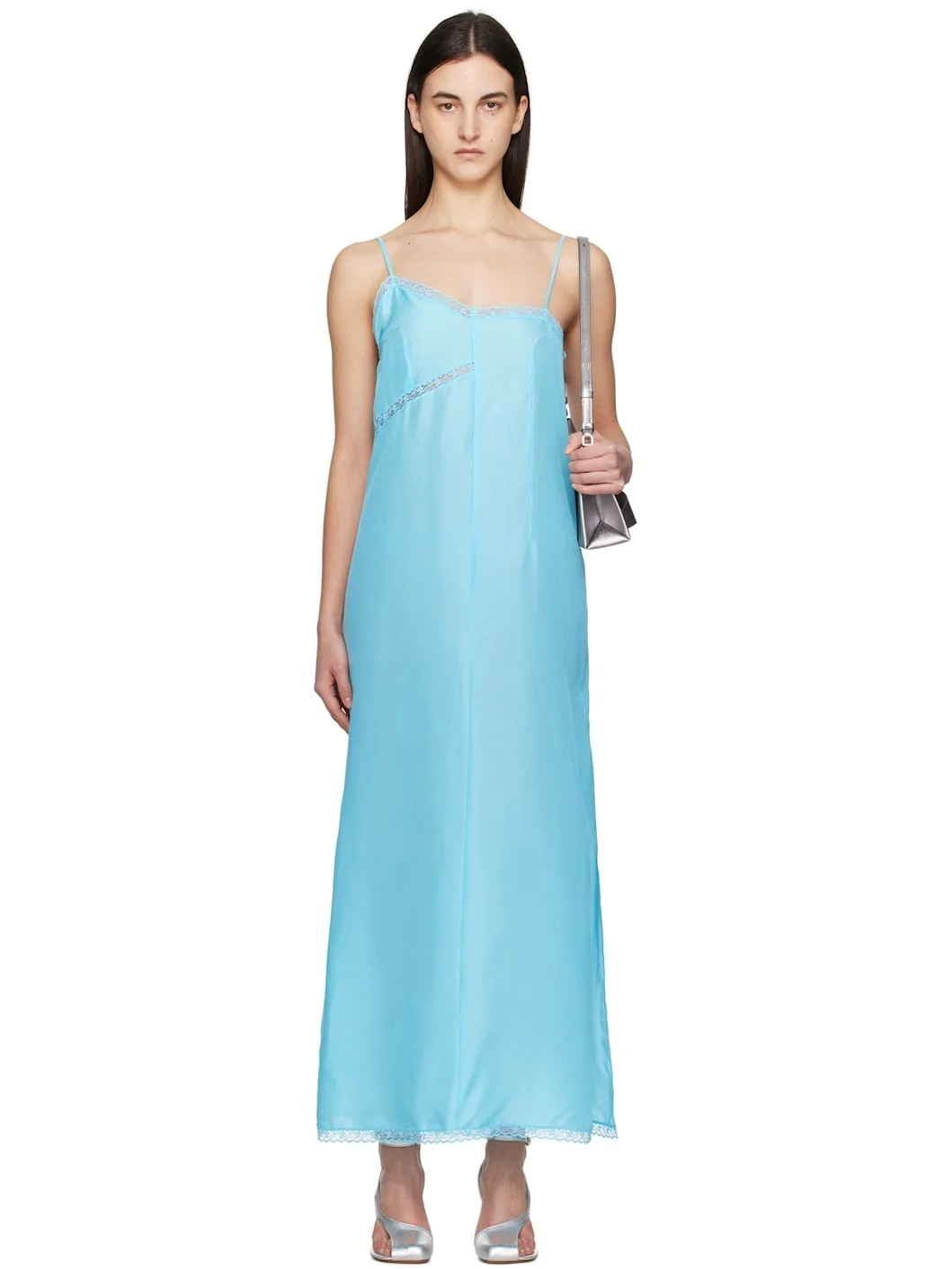 Silk satin maxi dress. Lace trim throughout. · Asymmetric sweetheart neckline · Darts at front and back · Slit at side seam · Adjustable spaghetti straps Supplier color: Turquoise 100% silk. Made in Italy 251188F055003