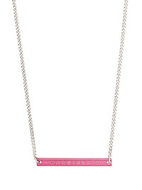 bar logo-engraved necklace bubblegum pink silver-tone hardware engraved logo hook-clip fastening statement pendant Made in Italy SIZE & FIT Model measurements Height 5 ft 10 in(1.78 m) Bust/Chest 31.49 in(80 cm) Hips 36.22 in(92 cm) Waist 25.59 in(65 cm) Measurement Length when open 20.86 in(53 cm) Minimum Length 18.89 in(48 cm)