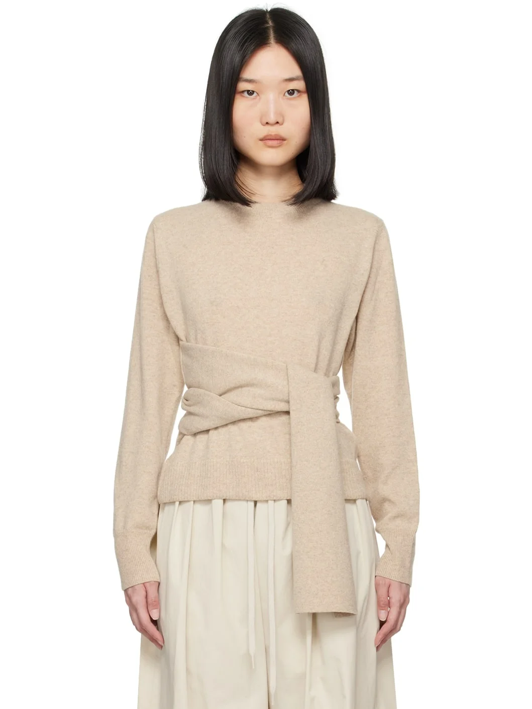 Beige Belted Sweater