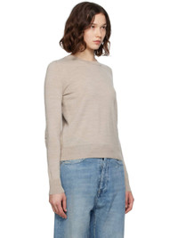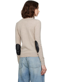 Knit virgin wool-blend sweater. · 12-gauge · Rib-knit crewneck, hem, and cuffs · Buffed calfskin elbow patches Supplier color: Beige melange Body: 50% virgin wool, 50% acrylic. Trim: 100% calfskin. Made in Romania 252188F096003