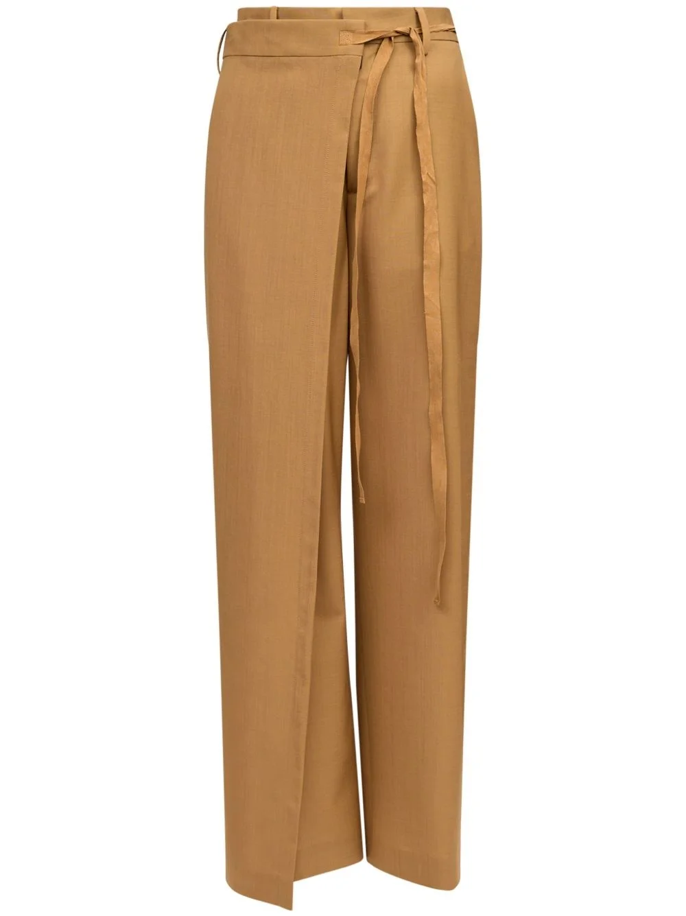 wrap-design flared trousers Highlights - Camel brown - Wool - Wrap design - Side tie fastening - Belt loops - Two side slit pockets - Two rear button-fastening jetted pockets - Flared design Made in Italy Composition Wool 100%