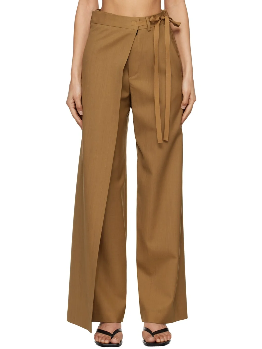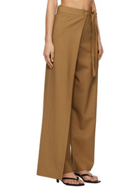 Virgin wool canvas trousers. · Layered wrap construction · Belt loops · Self-tie fastening at waistband · Four-pocket styling · Zip fly · White stitching at back Supplier color: Tobacco Body: 100% virgin wool. Lining: 100% viscose. Made in Italy 251188F087009