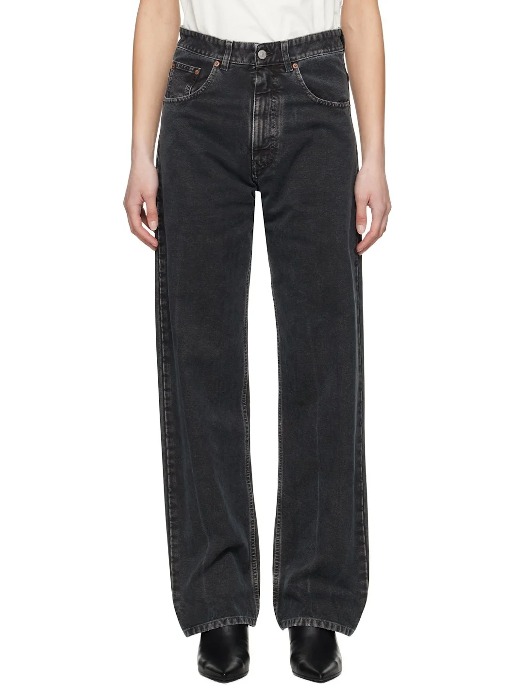 Cotton canvas jeans. Fading and subtle distressing throughout. · Belt loops · Five-pocket styling · Zip fly · Jacron logo patch at back waistband · White stitching at back · Logo-engraved bronze- and silver-tone hardware Supplier color: Black 100% cotton. Made in Italy 251188F069014
