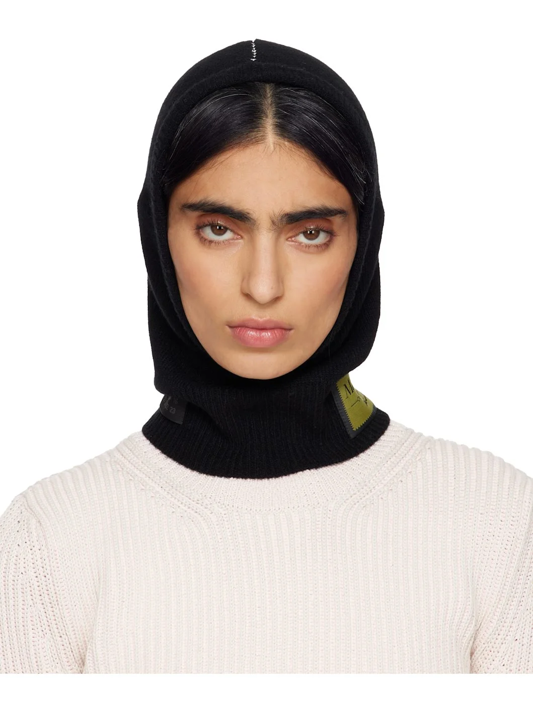 Knit wool-blend balaclava. · Rib-knit trim at face and collar · Logo patches at sides · White stitching at back face Supplier color: Black 80% wool, 20% polyamide. Made in Italy 261188F014003