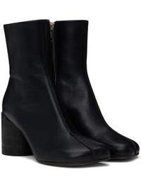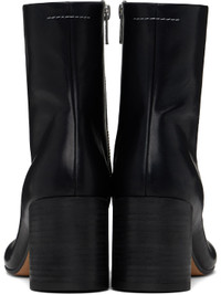 Ankle-high vegetable-tanned buffed calfskin boots in black. · Modified square toe · Central seam at vamp · Zip closure at inner side · Signature white stitching at heel · Buffed calfskin lining · Cylindrical block heel with rubber injection · Calfskin sole · Heel: H2.5" Supplier color: Black Upper: calfskin. Sole: calfskin, rubber. Made in Italy 251188F113003