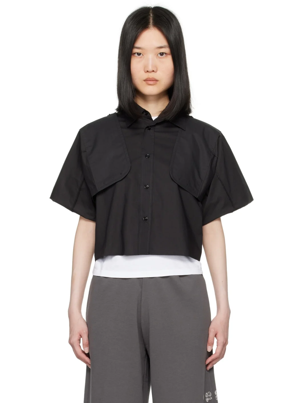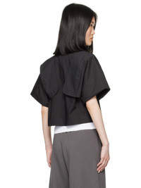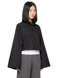 Cotton poplin shirt. · Spread collar · Button closure · Cropped hem · Button fastening at shoulders for alternate styling · Three-button barrel cuffs · White stitching at back collar Supplier color: Black 100% cotton. Made in Italy 242188F109014