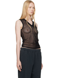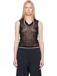 Sheer stretch nylon mesh tank top. · V-neck · Graphic and text printed at front · White stitching at back collar Supplier color: Black 92% polyamide, 8% elastane. Made in Italy 251188F111019