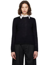Knit virgin wool-blend sweater. · 12-gauge · Rib-knit crewneck, hem, and cuffs · Buffed calfskin elbow patches Supplier color: Black Body: 50% virgin wool, 50% acrylic. Trim: 100% calfskin. Made in Romania 252188F096002