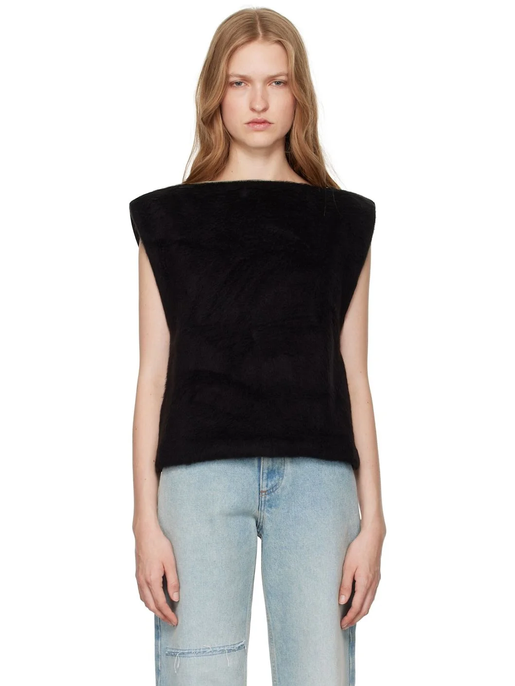 Stretch faux-fur and cotton jersey blouse. · Two-way zip fastening at boat neck · White stitching at back collar · Logo and text printed at back · Two-way zip vent at back · Silver-tone hardware Supplier Color: Black/Black Body 1: 96% acrylic, 4% elastane. Body 2: 100% cotton. Lining: 100% polyamide. Made in Italy 242188F110039
