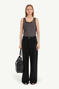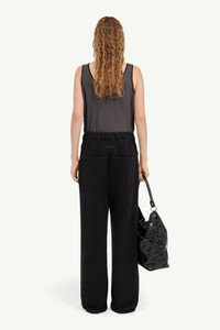 Wide-leg trousers in cotton with a relaxed, oversized cut. Designed with side slip pockets and a tonal drawstring at the waist, they balance casual ease with subtle tailoring cues. At the back, the white stitch line underlines MM6’s signature. Product Details Item ID S52KA0548M25014900 Primary fabric: 100% cotton Pocket lining: 100% cotton Full-length wide-leg fit Five-pocket design Zip and button front closure White stitch line at the back Made in Italy