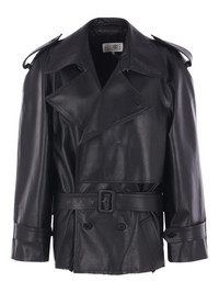 leather jacket Highlights - Black - Leather - Concealed front fastening - Epaulettes - Long sleeves Imported Composition Outer: Calf Leather 100% Lining: Viscose 100% Washing instructions Specialist Cleaning