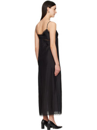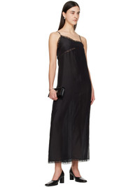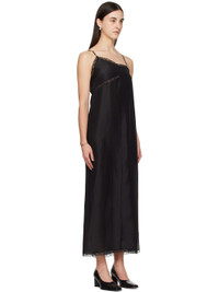 Silk satin maxi dress. Floral lace trim and scalloped edges throughout. · V-neck · Adjustable spaghetti straps · Vented side seam · White stitching at back Supplier color: Black 100% silk. Made in Italy 251188F055002