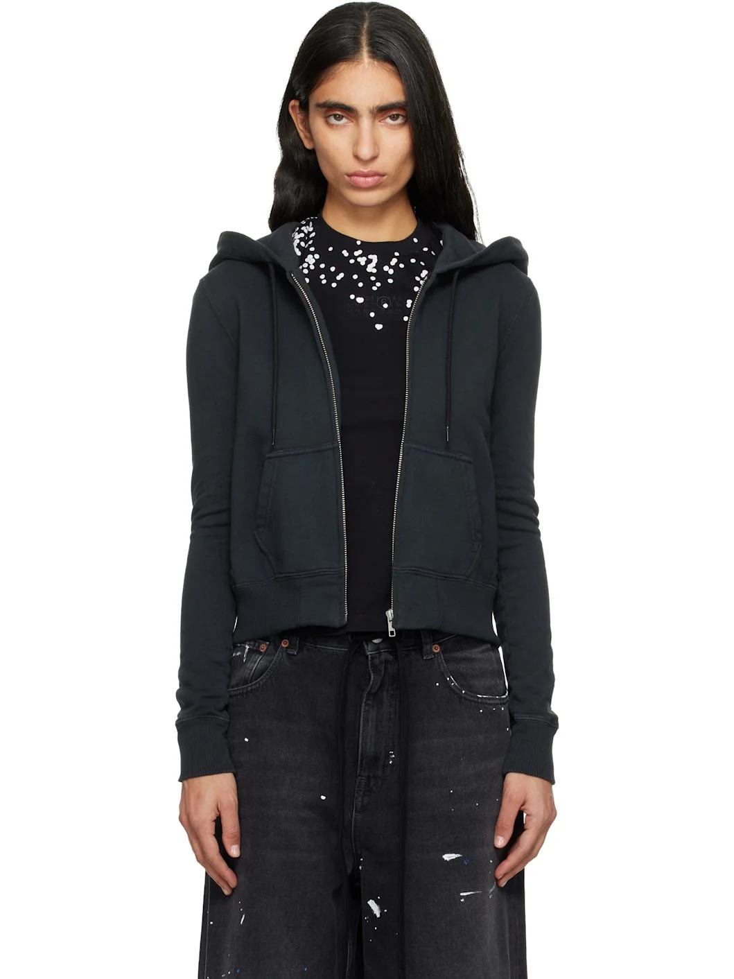 Paneled cotton jersey and satin hoodie. · Drawstring at hood · Zip closure · Logo printed at front · Patch pockets at waist · Rib-knit hem and cuffs · White stitching at back collar Supplier color: Washed black Body: 100% cotton. Trim: 100% polyester. Lining: 100% cotton. Made in Italy 252188F097010