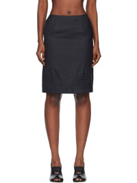 Virgin wool-blend twill miniskirt. · Pinstripes throughout · Darts at waistband · Mock welt pockets at hem · Belt loops at hem · Concealed zip closure at side · Central zip vent at back hem · White stitching at back waistband · Unlined Supplier color: Black Body: 60% virgin wool, 40% cotton. Trim: 100% viscose. Made in Italy 261188F090000