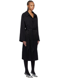 Virgin wool gabardine coat. · Open spread collar · Concealed button closure · Welt pockets · Belt loops and fringed self-tie belt at waist · Raglan sleeves · White stitching at back collar · Central seam at back · Central vent at back hem · Partial cotton poplin lining Supplier color: Black