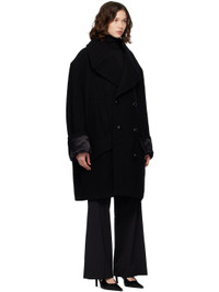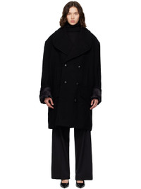 Virgin wool-blend melton coat. · Notched lapel · Double-breasted button closure · Welt and flap pockets · Rolled cuffs · White stitching at back collar · Welt pocket at interior · Full viscose satin lining Supplier color: Black Body: 80% virgin wool, 20% polyester. Trim: 100% cotton. Lining: 100% viscose. Made in Italy 252188F059003