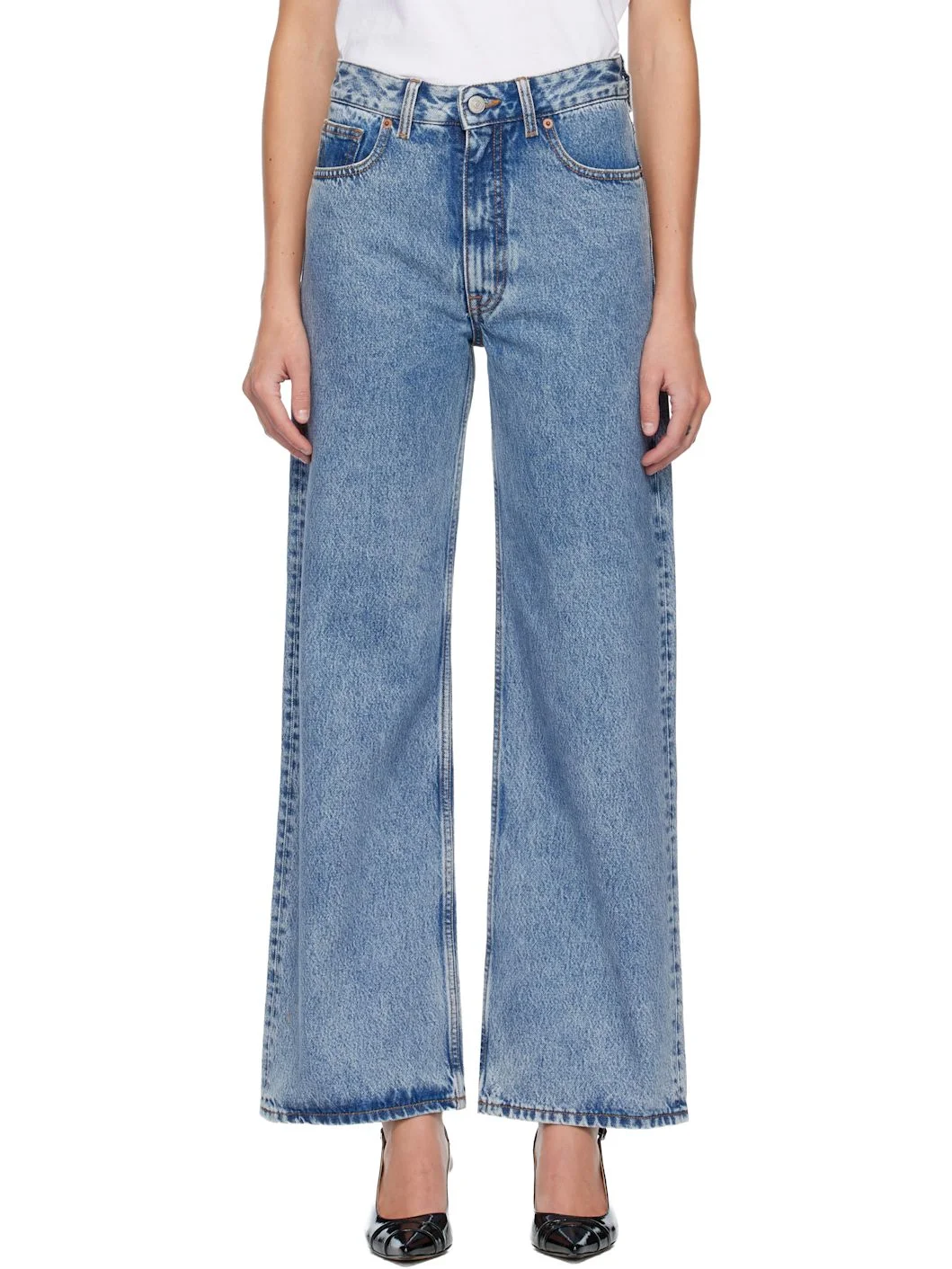 Non-stretch denim jeans. · Fading throughout · Belt loops · Five-pocket styling · Zip fly · White stitching at back · Logo patch at back pocket · Logo-engraved silver- and copper-tone hardware · Contrast stitching in tan Supplier color: Medium blue Body: 100% cotton. Trim: 65% polyester, 35% cotton. Made in Italy 252188F069032