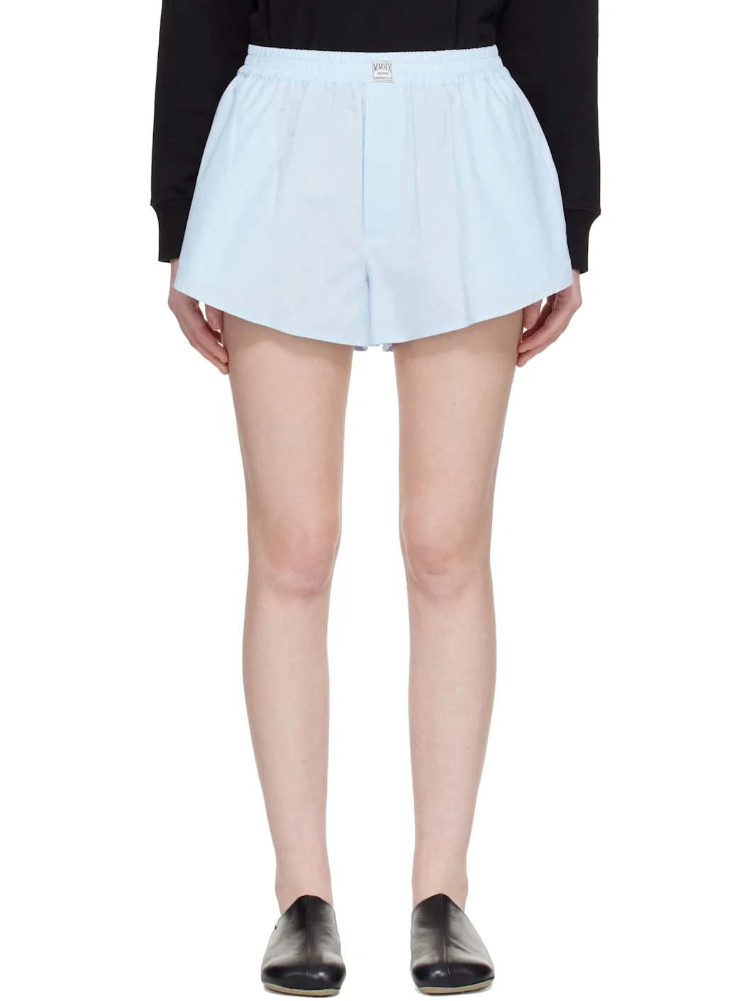 Cotton poplin shorts. · Elasticized waistband · Logo patch at front waistband · Two-pocket styling · White stitching at back waist Supplier color: Light Blue 100% cotton. Made in Portugal 261188F088002