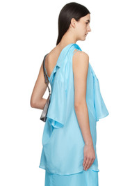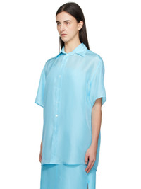 Silk satin shirt. · Spread collar · Button closure · White stitching at back collar · Cutout at back for alternate styling Supplier color: Turquoise 100% silk. Made in Italy 251188F109003