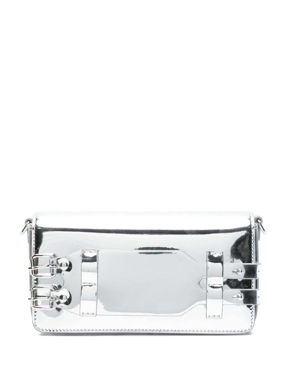 Bracelet shoulder bag Highlights - Silver-tone - Foldover top with magnetic fastening - Adjustable detachable shoulder strap - Internal slip pocket - This piece comes complete with a protective dust bag. Made in Italy Composition Outer: Polyurethane 80%, Polyester 20% Lining: Cotton 100% SIZE & FIT Model measurements Height 5 ft 11 in(1.8 m) Bust/Chest 31.49 in(80 cm) Hips 35.82 in(91 cm) Waist 24.8 in(63 cm) Measurement DEPTH 1.96 in(5 cm) HEIGHT 3.93 in(10 cm) WIDTH 8.26 in(21 cm)