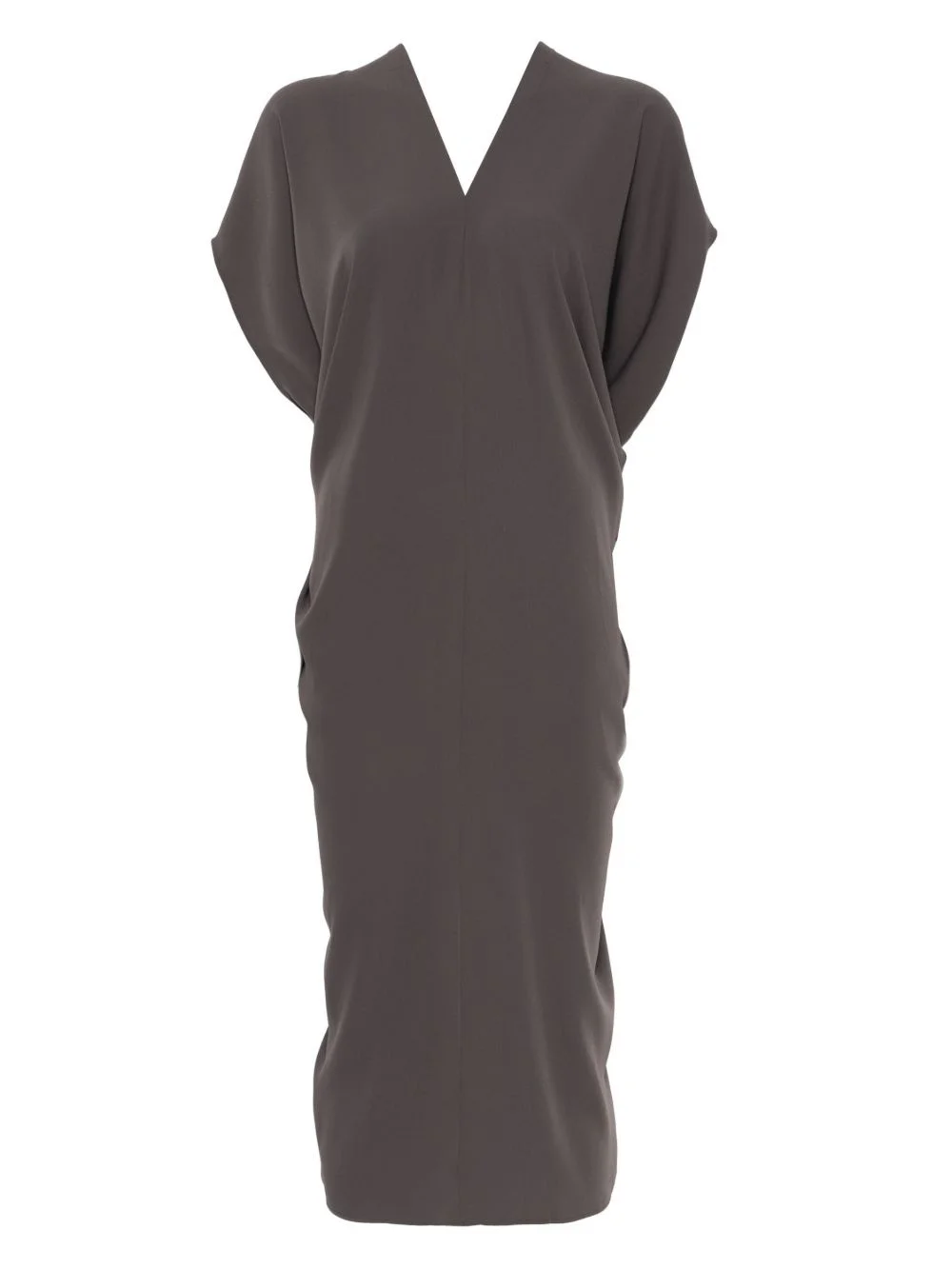 draped dress Highlights - Brown - V-neck - Short sleeves - Draped detailing - Straight hem Made in Italy Composition Polyester 100% SIZE & FIT Model measurements Height 5 ft 11 in(1.8 m) Bust/Chest 31.49 in(80 cm) Hips 36.61 in(93 cm) Waist 24.4 in(62 cm) FittingInformation Designed for a slim fit that sits just away from the body offering a close yet comfortable fit Made from a midweight non-stretch fabric, this piece offers minimal elasticity when worn