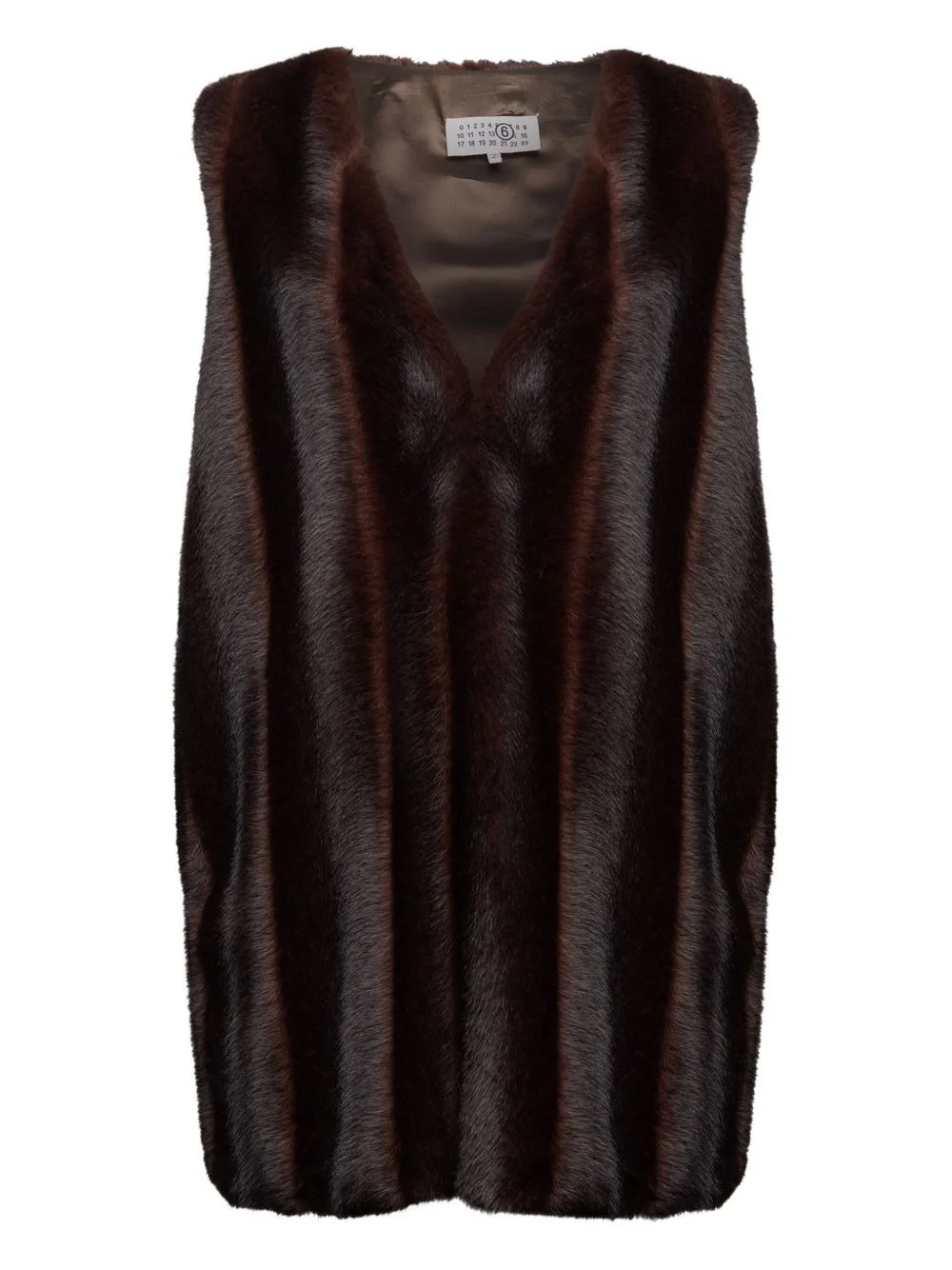 faux-fur mini dress Highlights - Dark brown - V-neckline - Striped design - Sleeveless - Slightly oversized fit Made in Italy Composition Polyester 100% Washing instructions Read Manufacturer Guidelines