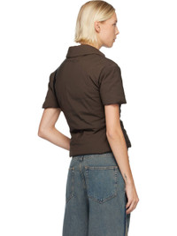 Padded taffeta polo. · Spread collar · Three-button placket · Patch pocket at chest · Logo flag at side seam · White stitching at back collar · Full satin lining Supplier color: Brown Body: 100% polyester. Fill: 100% polyester. Lining: 100% viscose. Made in Italy 252188F108002