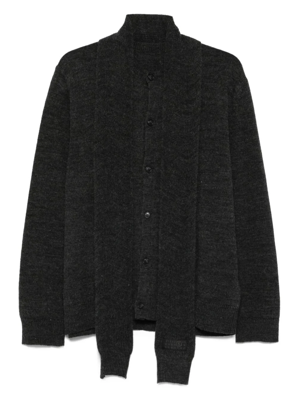 buttoned tie-neck cardigan Highlights - Dark grey - Tie-neck detail - Button front fastening - Long sleeves - Ribbed knit Imported Composition Acrylic 50%, Virgin Wool 50% SIZE & FIT Model measurements Height 5 ft 10 in(1.78 m) Bust/Chest 33.46 in(85 cm) Hips 36.22 in(92 cm) Waist 23.22 in(59 cm) Washing instructions Dry Clean Only