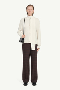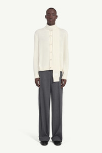 A refined knit with an integrated scarf that adds a subtle, subversive touch. Ribbed trims bring a sense of balance, while MM6’s signature white stitch at the back subtly reinforces the house’s unconventional approach. Product Details Item ID S52HP0034M13140101 Primary Fabric: 50% Virgin Wool 50% Acrylic Long-sleeve sweater in wool blend Integrated scarf detail at the neck Long sleeves Ribbed cuffs and hem White stitch line at the back Model 1 is 188 cm tall, model 2 is 180 cm tall and wears a size M.