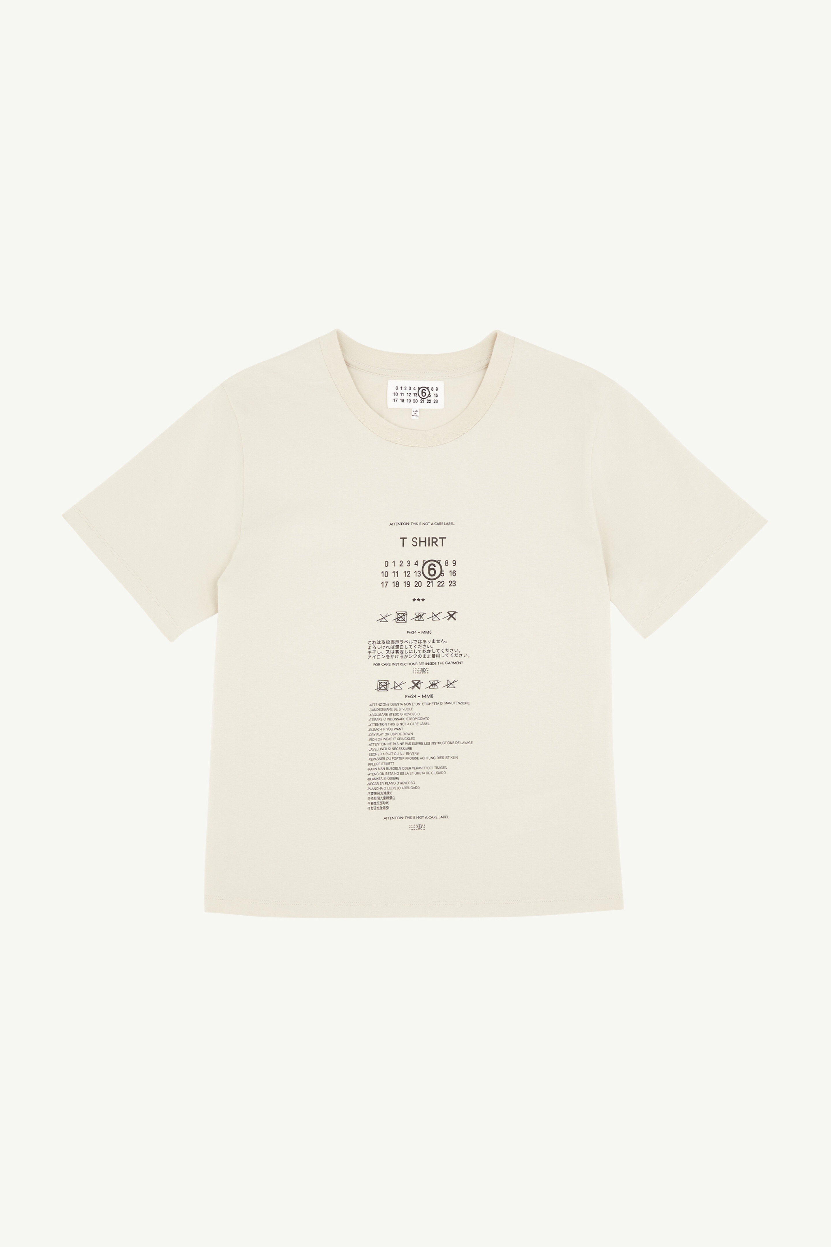 T-shirt made from cotton jersey. The style is denoted by the brand’s care label print emblazoned on the front of the style. MM6’s discreet yet distinct signature, a horizontal line of white stitches is found on the back of the garment. Product Details Item ID S52GC0320S24311103 Composition: 100% cotton Cotton jersey T-shirt Crewneck MM6 care label print at the front White stitch line at the back Regular fit Made in Portugal Model is 5'8'' tall and wears a size M.