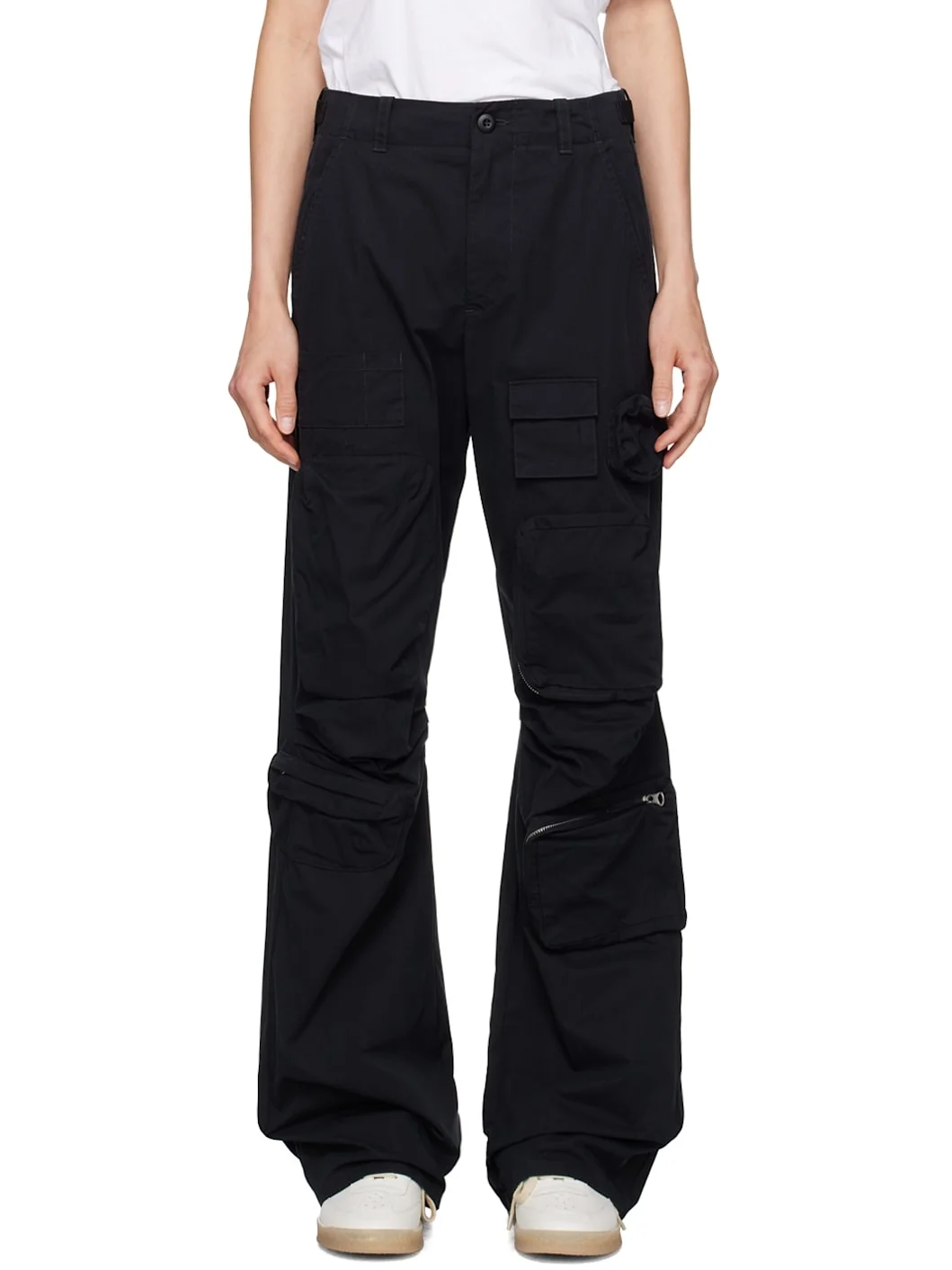 Cotton gabardine cargo pants. Cargo pockets throughout. · Belt loops · Four-pocket styling · Zip-fly · Cinch-tabs at back waist · White stitching at back Supplier color: Black