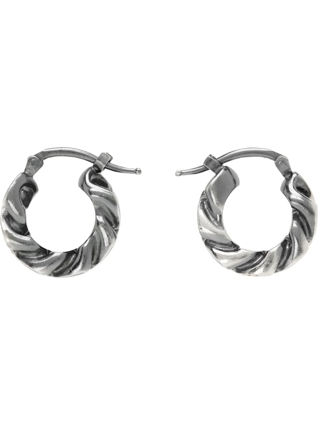 Pair of fixed-chain hoop earrings in antiqued silver-tone brass. · Logo engraved at inner hoop · Hinged-post fastening · D0.5" Supplier color: Brunito Brass. Made in Italy 261188F022006