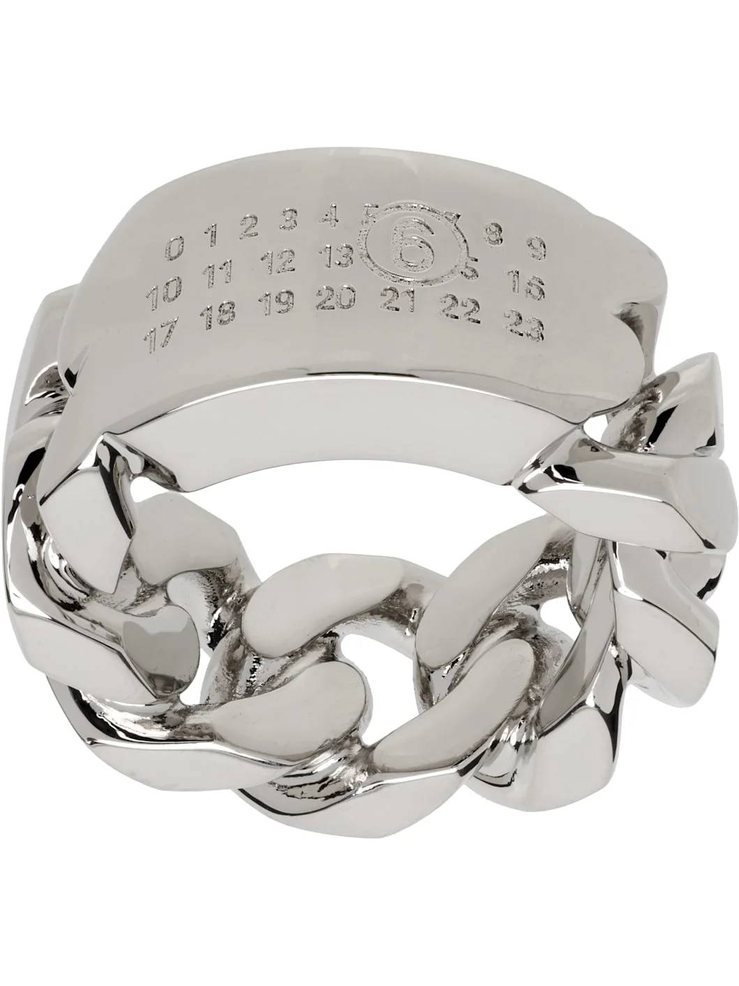 Curb chain ring in polished silver-tone brass. Logo plaque at face. Supplier color: Palladio polished Brass. Made in Italy 252188F024004