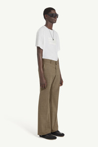 Blurring tradition and innovation, these tailored trousers reflect MM6’s approach to refined dressing. A heritage check print combines with belt loops and the Maison’s white stitch line at the back, offering a classic design with understated subversion. Product Details Item ID SH2KA0034M35437002F Primary Fabric: 54% Polyester 44% Virgin Wool 2% Elastane-Spandex Lining: 100% Cotton Tailoring viscose blend trousers Regular waist Belt loops Button closure Straight leg Side pockets White stitch line at the back Made in Italy