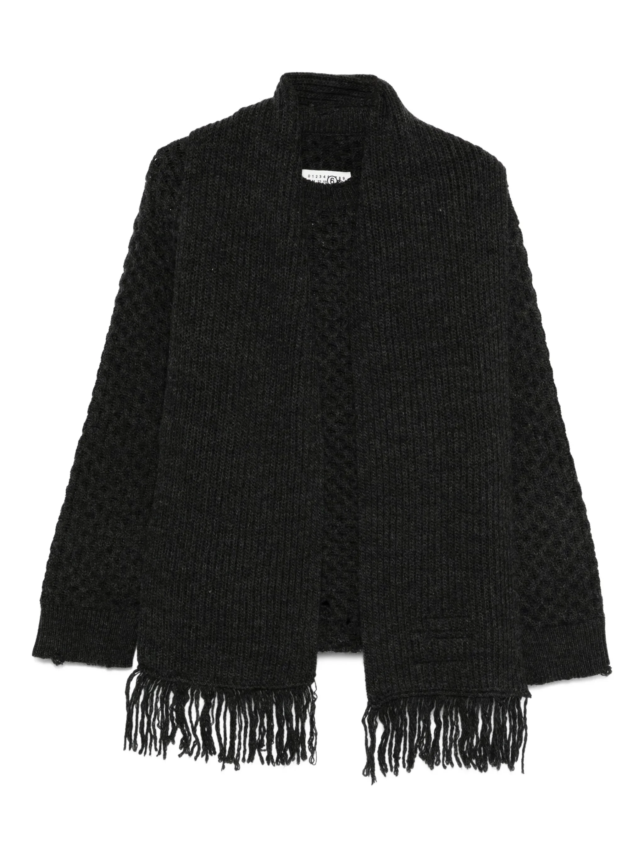 grey chunky knit long sleeves fringed hem attached scar - Color: GREY - Made in: Italy - Designer Style ID: M13132 S52HL0049 855M Composition and care Acrylic: 50.0%, Virgin Wool: 50.0%
