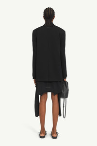 The tailored cut, padded shoulders and single-button fastening of this wool jacket demonstrate the inspiration the brand has gathered from power suiting. Crafted from a blend of virgin wool and polyester, the style is denoted by its Korean collar and flap pockets. MM6’s discreet yet distinct signature, a horizontal line of white stitches, is also found on the back of the garment. Product Details Item ID S52BN0137M35153900 Composition: 54% polyester, 44% virgin wool, 2% elastane Lining: 100% viscose-rayon Tailoring wool suit jacket Padded shoulder Single-breasted closure Collarless Flap pockets Single vent White stitch line at the back Made in Portugal Model is 5'8'' tall and wears a size 42.