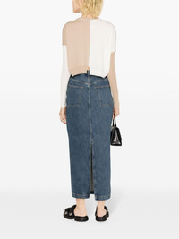 colour-block cropped jumper Highlights - White/beige - Fine knit - Colour-block panelled design - Signature single-stitch logo - Ribbed v-neck - Drop shoulder - Long sleeves - Ribbed cuffs and hem - Rear slit - Cropped Made in Italy Composition Viscose 88%, Polyester 12% SIZE & FIT Model measurements Height 5 ft 10 in(1.79 m) Bust/Chest 31.49 in(80 cm) Hips 35.03 in(89 cm) Waist 23.62 in(60 cm) FittingInformation Designed for a relaxed fit, this piece allows for comfort and movement when worn Cropped in length Made with a midweight knit, this piece offers some stretch This piece fits true to size – take your usual size Washing instructions Dry Clean Only
