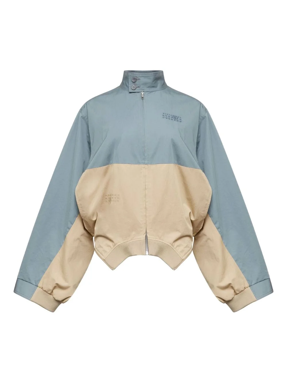 colourblock jacket Highlights - Light blue and beige - Colourblock design - Zip fastening - High neck - Elasticated hem Made in Italy Composition Cotton 100% Washing instructions Read Manufacturer Guidelines