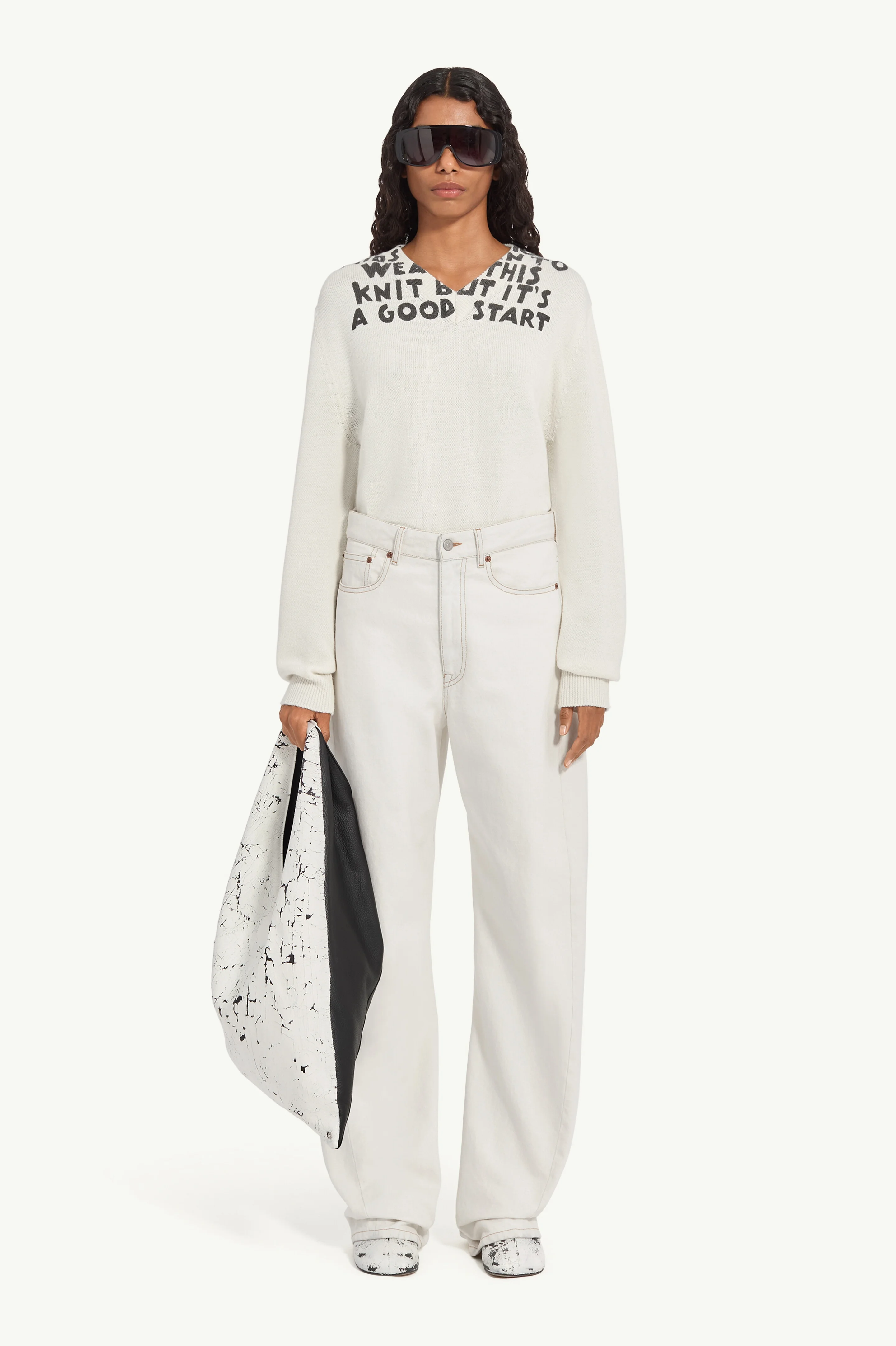 These jeans reinterpret archetypal denim with contrast stitching and MM6’s numeric artwork, blending utility with subtle subversion. A slash detail just below the belt loops disrupts the back, adding an unexpected twist to a familiar silhouette, emblematic of the Maison’s deconstructive approach. Product Details Item ID S62LB0184M30018963 Primary Fabric: 100% Cotton Pocket Lining: 65% Polyester 35% Cotton Denim 5-pockets trousers Regular waist Button closure Belt loops Straight leg White stitch line at the back Made in Italy